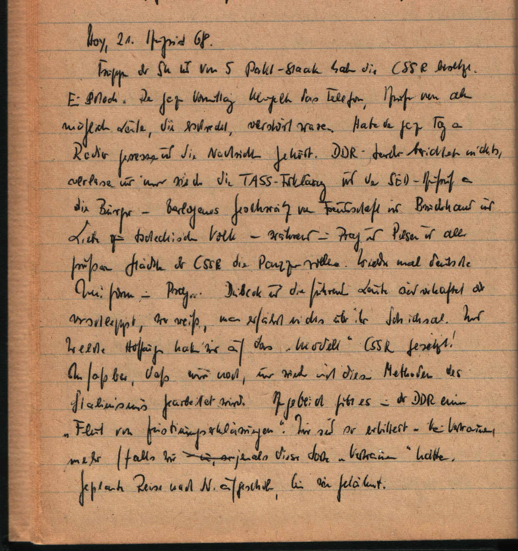 Auszug aus dem Tagebuch Brigitte Reimanns im August 1968