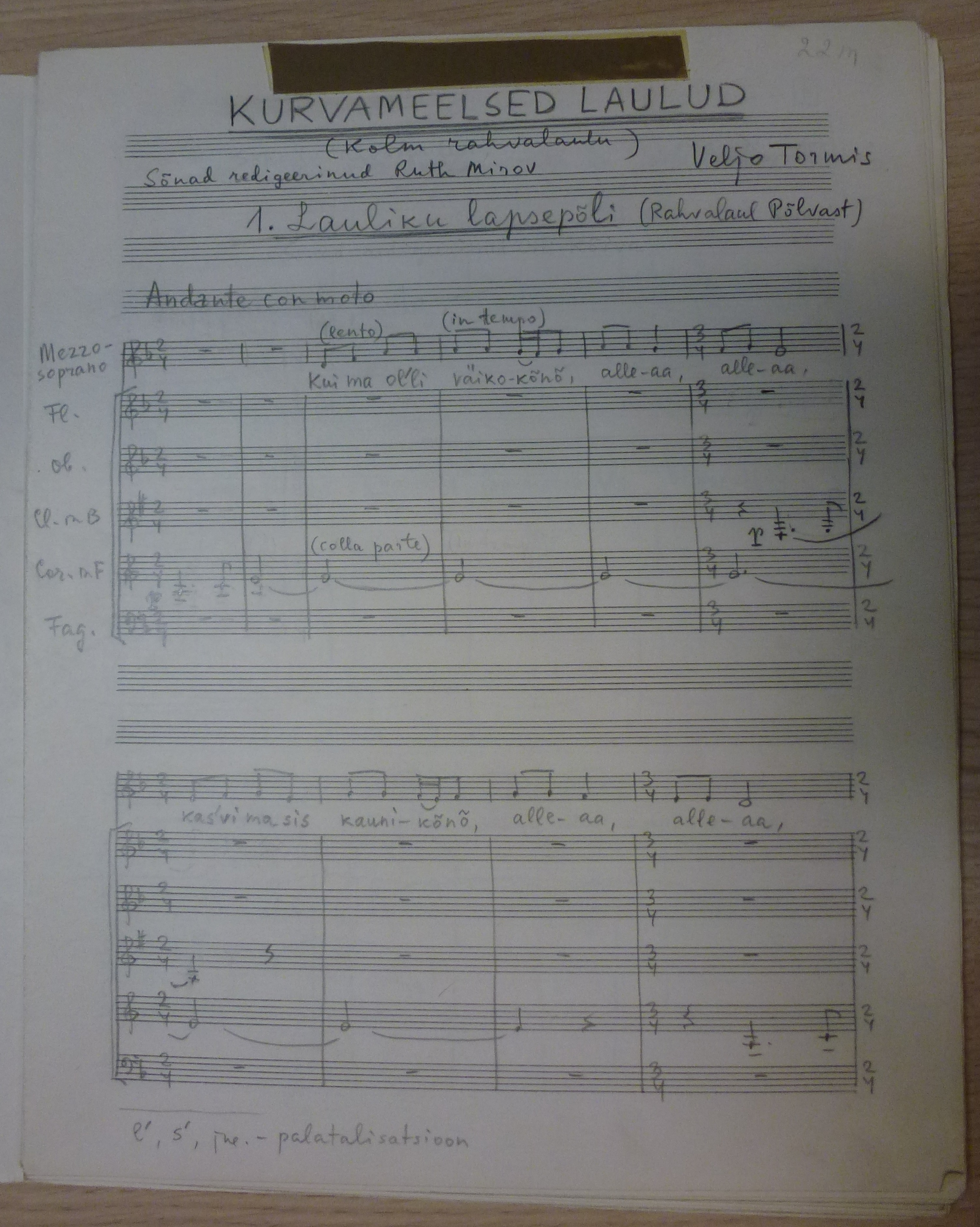 Manuscript of "Kurvameelsed laulud" [melancholy songs]